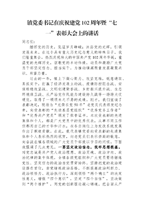 镇党委书记在庆祝建党102周年暨“七一”表彰大会上的讲话.docx