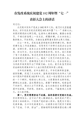 在发改系统庆祝建党102周年暨“七一”表彰大会上的讲话.docx
