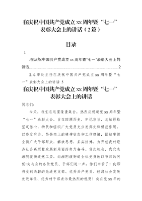(2篇)在庆祝中国共产党成立xx周年暨“七一”表彰大会上的讲话.docx