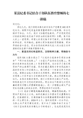 某县纪委书记结合干部队伍教育整顿的七一讲稿.docx