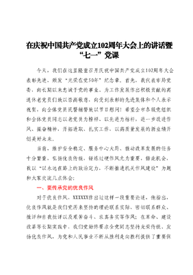 在庆祝中国共产党成立102周年大会上的讲话暨七一党课.docx
