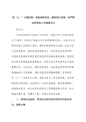 迎“七一”专题党课:重温光辉历史,继承优良传统,以严明纪律激发干事创业活力.docx