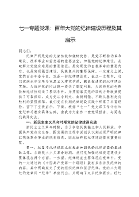 七一专题党课:百年大党的纪律建设历程及其启示.docx