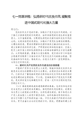 七一党课讲稿:弘扬新时代优良作风 凝聚推进中国式现代化强大力量.docx