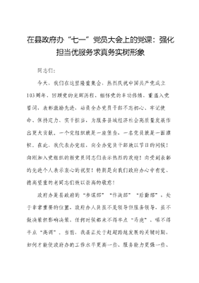 在县政府办“七一”党员大会上的党课:强化担当优服务 求真务实树形象.docx