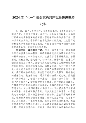 2024年“七一”表彰优秀共产党员先进事迹材料.docx