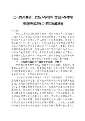 七一党课讲稿:发扬斗争精神 增强斗争本领 推动纪检监察工作高质量发展.docx