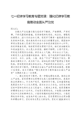 七一纪律学习教育专题党课:强化纪律学习教育推动全面从严治党.docx