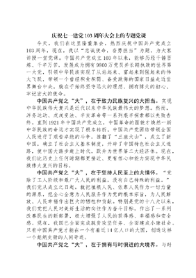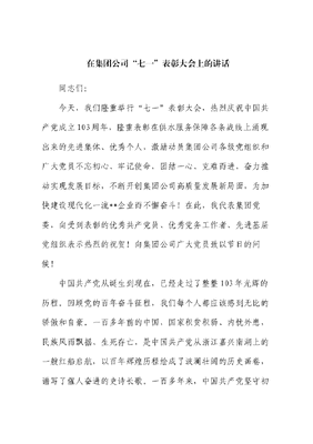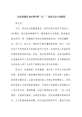 在庆祝建党103周年暨“七一”表彰大会上的讲话.docx