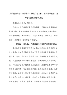 乡镇党委庆七一表彰发言:强化党建工作,推动科学发展,努力建设富裕和谐新某某.docx