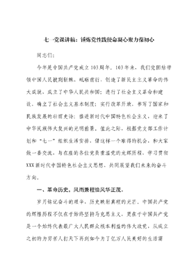七一党课讲稿:锤炼党性践使命凝心聚力葆初心.docx