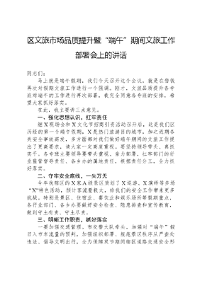 区文旅市场品质提升暨“端午”期间文旅工作部署会上的讲话.docx