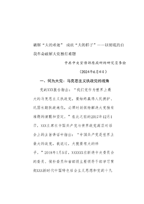 党课讲稿:破解“大的难处” 成就“大的样子”——以彻底的自我革命破解大党独有难题(党建、党的建设、七一).doc
