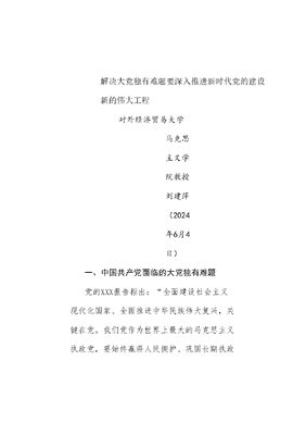 党课讲稿:解决大党独有难题要深入推进新时代党的建设新的伟大工程(党建、自我革命、七一).doc
