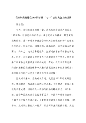 在市局庆祝建党103周年暨 “七一”表彰大会上的讲话.docx