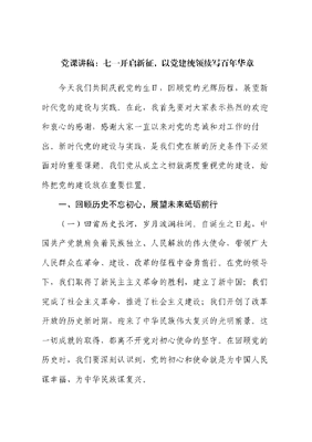 党课讲稿:七一开启新征,以党建统领续写百年华章.docx
