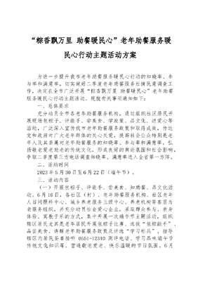 “粽香飘万里+助餐暖民心”老年助餐服务暖民心行动主题活动方案.docx