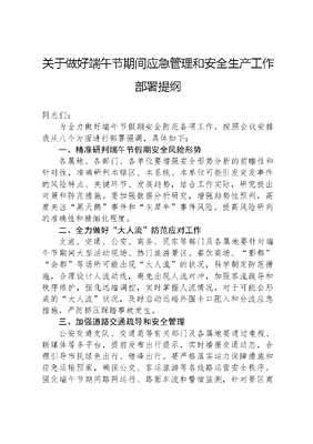 关于做好端午节期间应急管理和安全生产工作部署提纲.docx