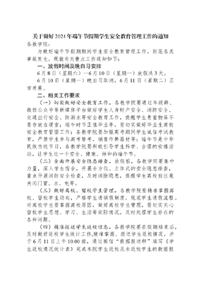 关于做好2024年端午节假期学生安全教育管理工作的通知.docx