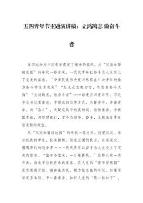 五四青年节主题演讲稿:立鸿鹄志 做奋斗者.docx
