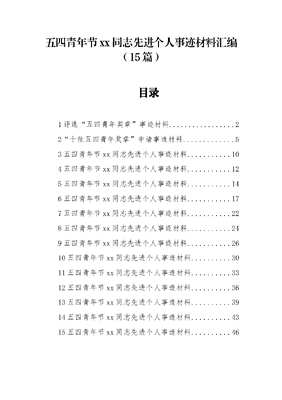 (15篇)五四青年节xx同志先进个人事迹材料汇编.docx