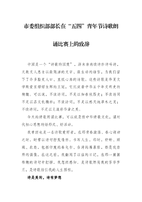 市委组织部部长在“五四”青年节诗歌朗诵比赛上的致辞.docx