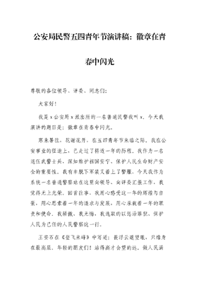 公安局民警五四青年节演讲稿:徽章在青春中闪光.docx