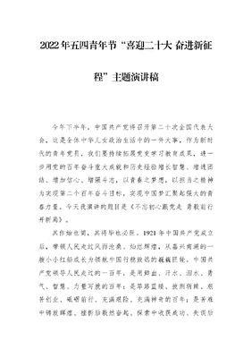 2022年五四青年节“喜迎二十大+奋进新征程”主题演讲稿.docx