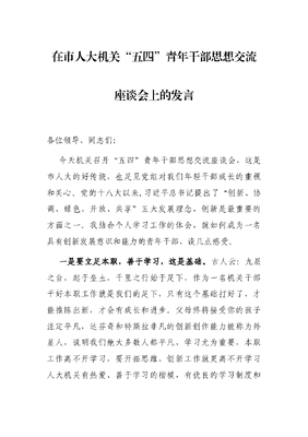 在市人大机关“五四”青年干部思想交流座谈会上的发言.docx