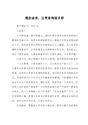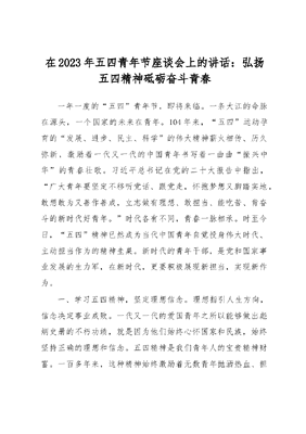 在2023年五四青年节座谈会上的讲话:弘扬五四精神砥砺奋斗青春.docx