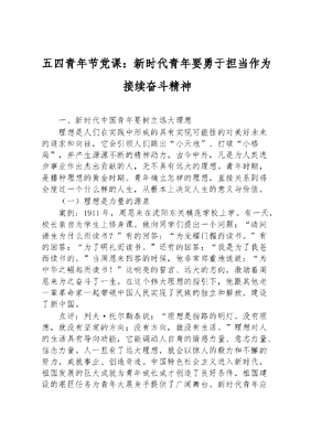 五四青年节党课_新时代青年要勇于担当作为,接续奋斗精神.docx