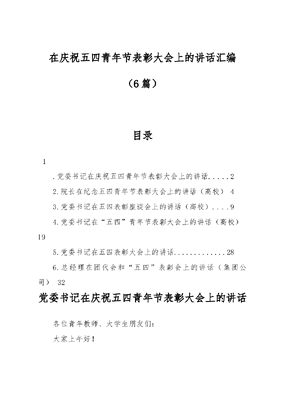 (6篇)在庆祝五四青年节表彰大会上的讲话汇编.docx
