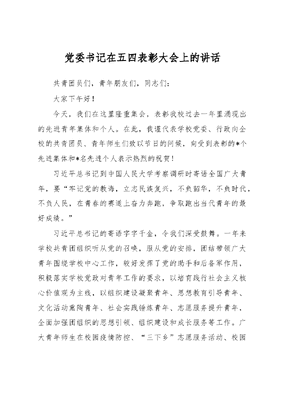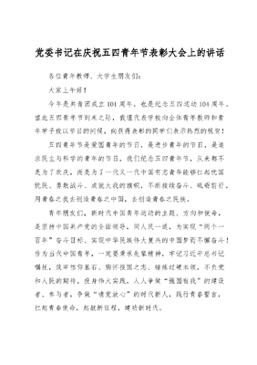党委书记在庆祝五四青年节表彰大会上的讲话.docx