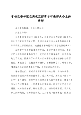 学校党委书记在庆祝五四青年节表彰大会上的讲话.docx