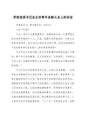 学校党委书记在五四青年表彰大会上的讲话.docx