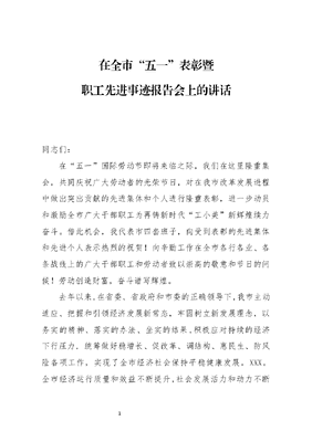 在全市五一表彰暨职工先进事迹报告会上的讲话.docx