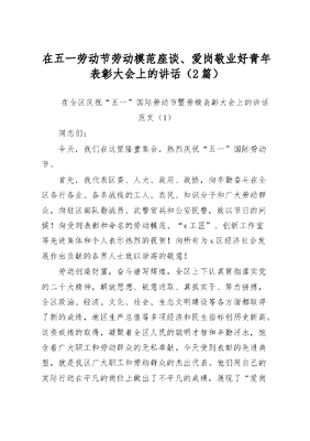 (2篇)在五一劳动节劳动模范座谈、爱岗敬业好青年表彰大会上的讲话.docx