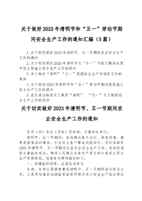 (5篇)关于做好2023年清明节和“五一”劳动节期间安全生产工作的通知汇编.docx
