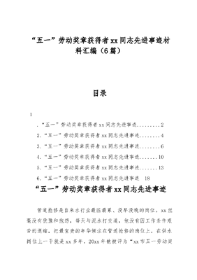 (6篇)“五一”劳动奖章获得者xx同志先进事迹材料汇编.docx