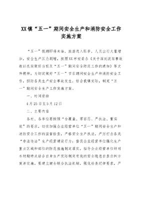 XX镇“五一”期间安全生产和消防安全工作实施方案.docx