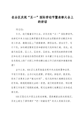 在全区庆祝“五一”国际劳动节暨表彰大会上的讲话.docx