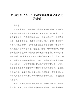 在2023年“五一”劳动节前集体廉政谈话上的讲话.docx