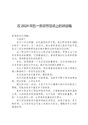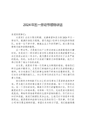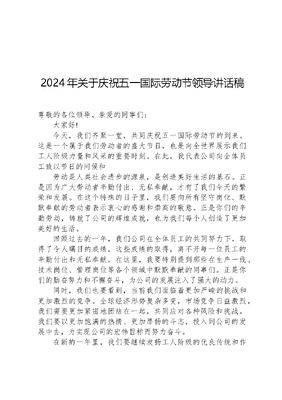 2024年关于庆祝五一国际劳动节领导讲话稿.docx