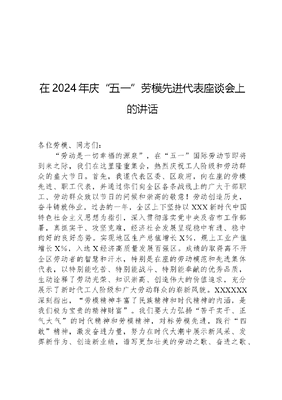 在2024年庆“五一”劳模先进代表座谈会上的讲话.docx