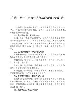 在庆“五一”劳模先进代表座谈会上的讲话.docx