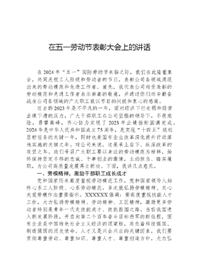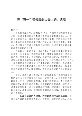 2024年在“五一”劳模表彰大会上的讲话稿.docx
