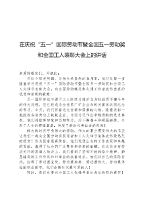 在庆祝“五一”国际劳动节暨全国五一劳动奖和全国工人表彰大会上的讲话.docx