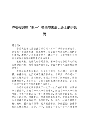 党委书记在2024年“五一”劳动节表彰大会上的讲话稿.docx