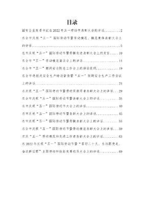 (15篇)2022年五一各类表彰讲话、安全生产讲话、发言资料汇编.docx