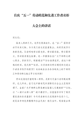 在庆“五一”劳动模范和先进工作者表彰大会上的讲话.docx